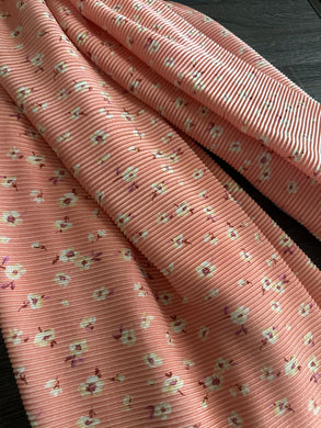 Rayon crinkle woven: 3 YD CUT REMNANT Peach pink beige floral ⭐️![]()  - Regular price