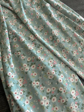 Crepe woven: 2.5 YD CUT REMNANT Light blue green pretty floral ⭐️![]()  - Regular price