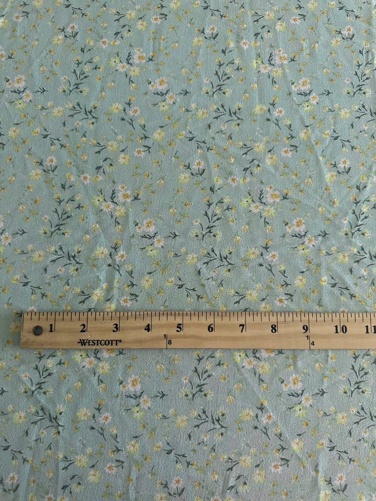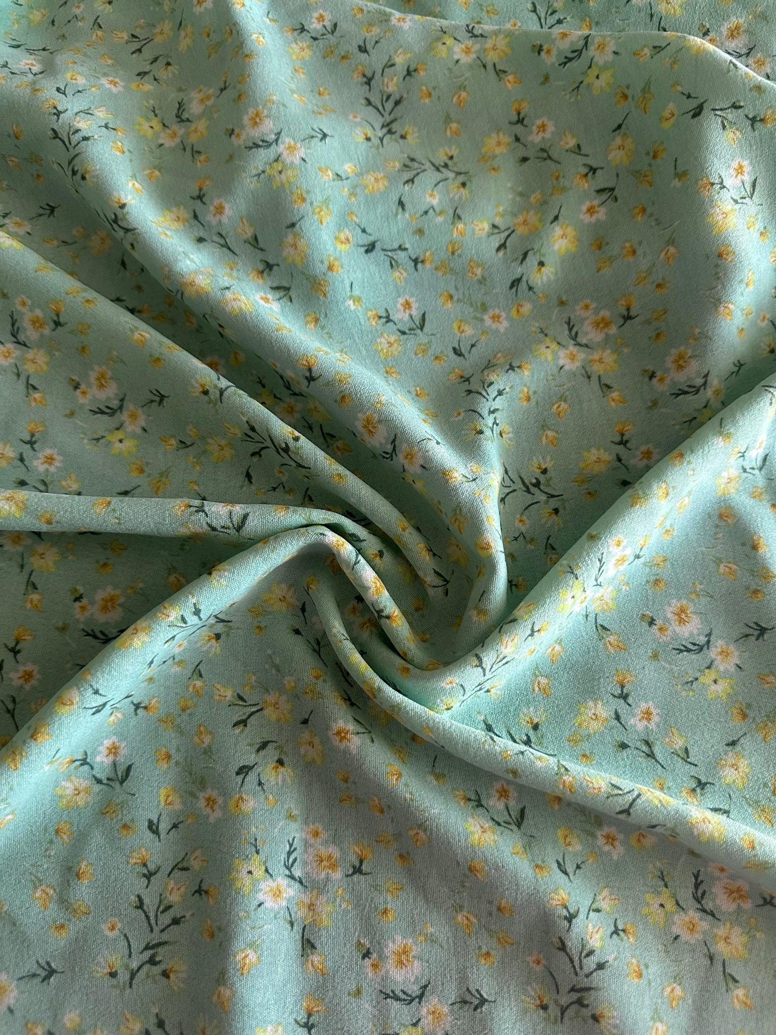 100% Polyester (CEY airflow) woven: 2.75 YD CUT REMNANT Mint yellow floral ⭐️
